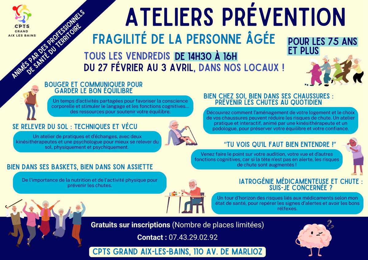 Cette année 2026 voit arriver un cycle de 6 ateliers, co-animés par nos professionnels de santé adhérents, et à destination des personnes âgées de 75 ans et plus, habitant sur notre territoire.