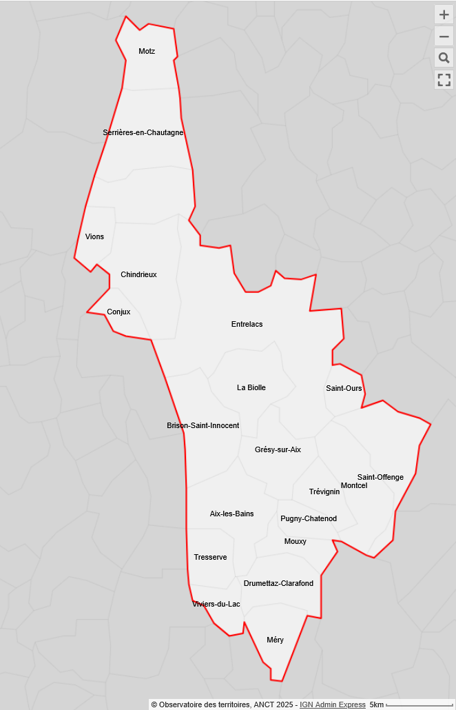 La CPTS-Grand-Aix-les-Bains regroupe tous les professionnels médicaux et paramédicaux des communes d'Aix-les-Bains, Chindrieux, Conjux, Entrelacs, La Biolle, Brison St Innocent, Drumettaz Clarafond, Grésy sur Aix, Méry, Montcel, Mouxy, Motz, Pugny Chatenod, Ruffieux, Serrières-en-Chautagne, St Offenge, St Ours, Tresserve, Trévignin, Vions, Viviers du Lac.